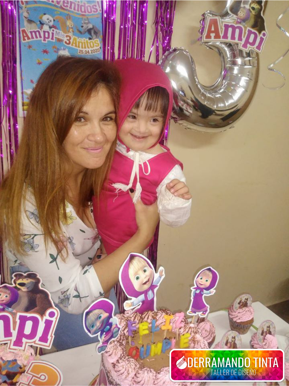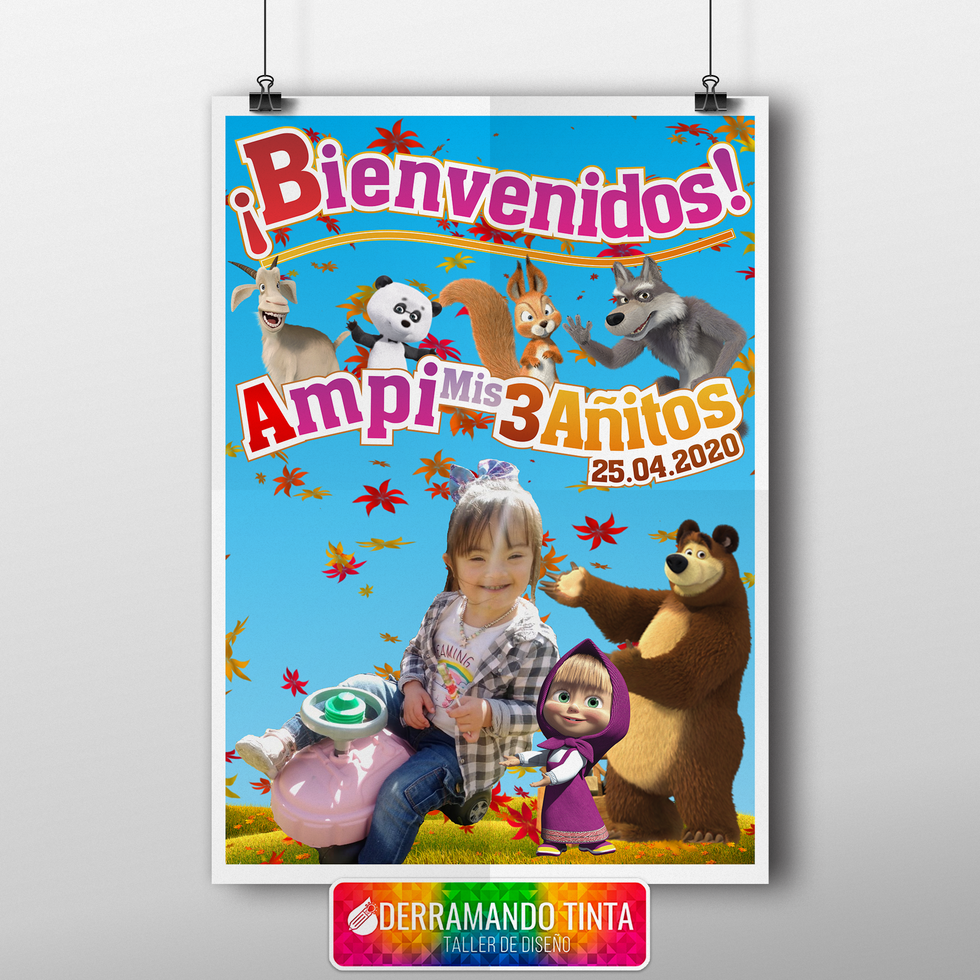 Tuvo su cumple junto a sus personajes favoritos: Masha y el Oso, de la mano de los Diseños Personalizados de nuestro Taller de Diseño, Derramando Tinta. Nosotros le diseñamos con mucho amor, la Tarjeta Digital, los Toppers para la torta, el Banderín y el Póster de bienvenida.